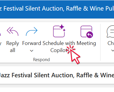 At the top of the email, click the Schedule with Copilot icon. This opens a meeting invite window.